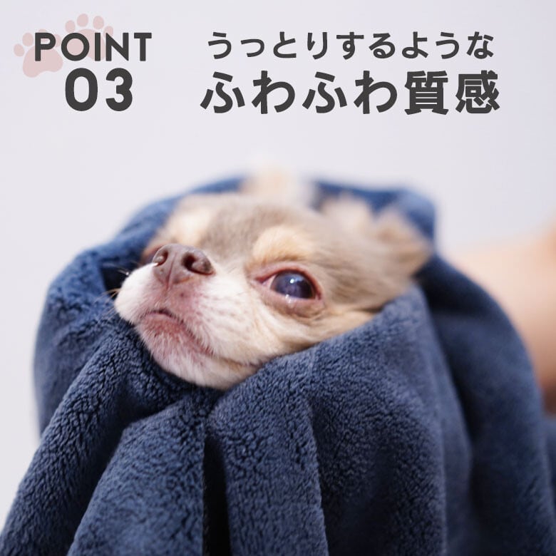 ワンちゃんをふわっと包むだけで全身の水分をさっと吸収。