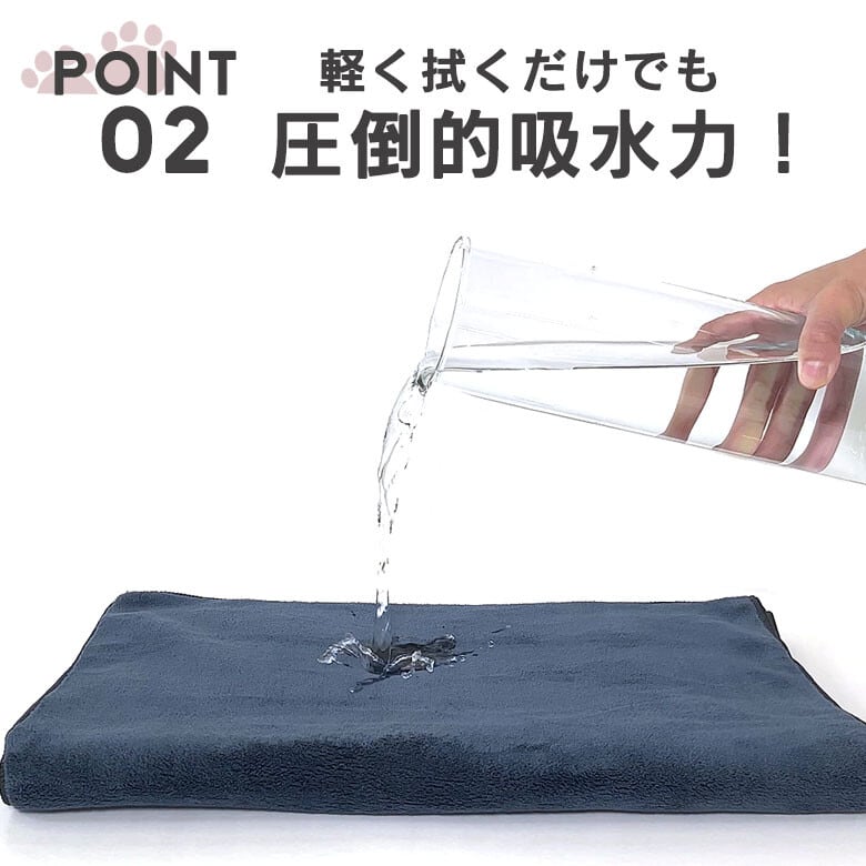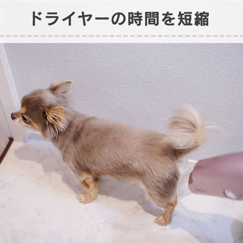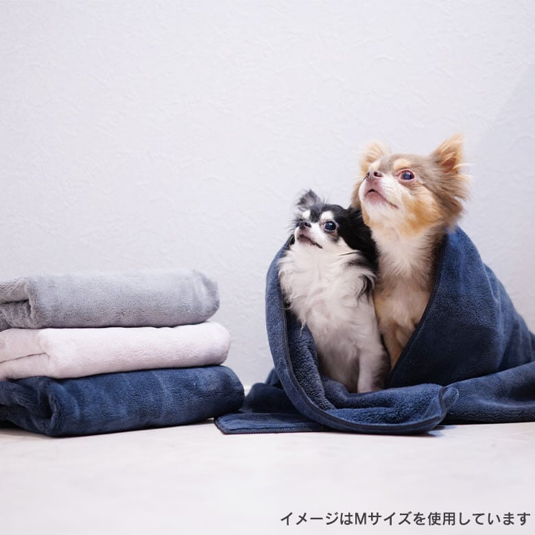 ワンちゃんをふわっと包むだけで全身の水分をさっと吸収。