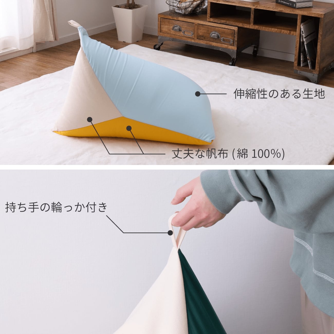 ビーズクッション 三角 もちもち おしゃれ クッション リビング 背もたれ