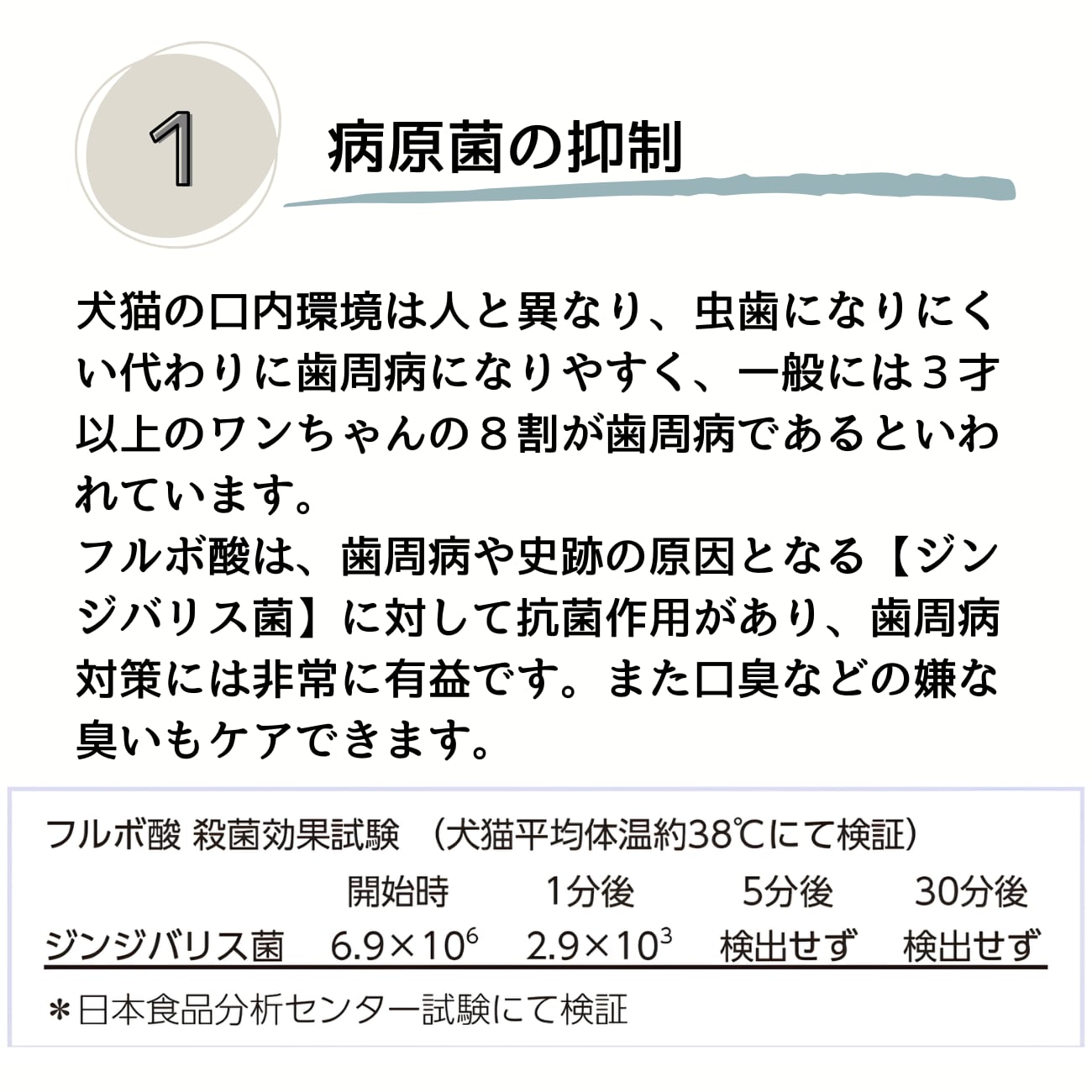 フルボ酸は、歯周病や歯石の原因となる、ジンジバリス菌に対して抗菌作用があり歯周病対策には非常に有益です。